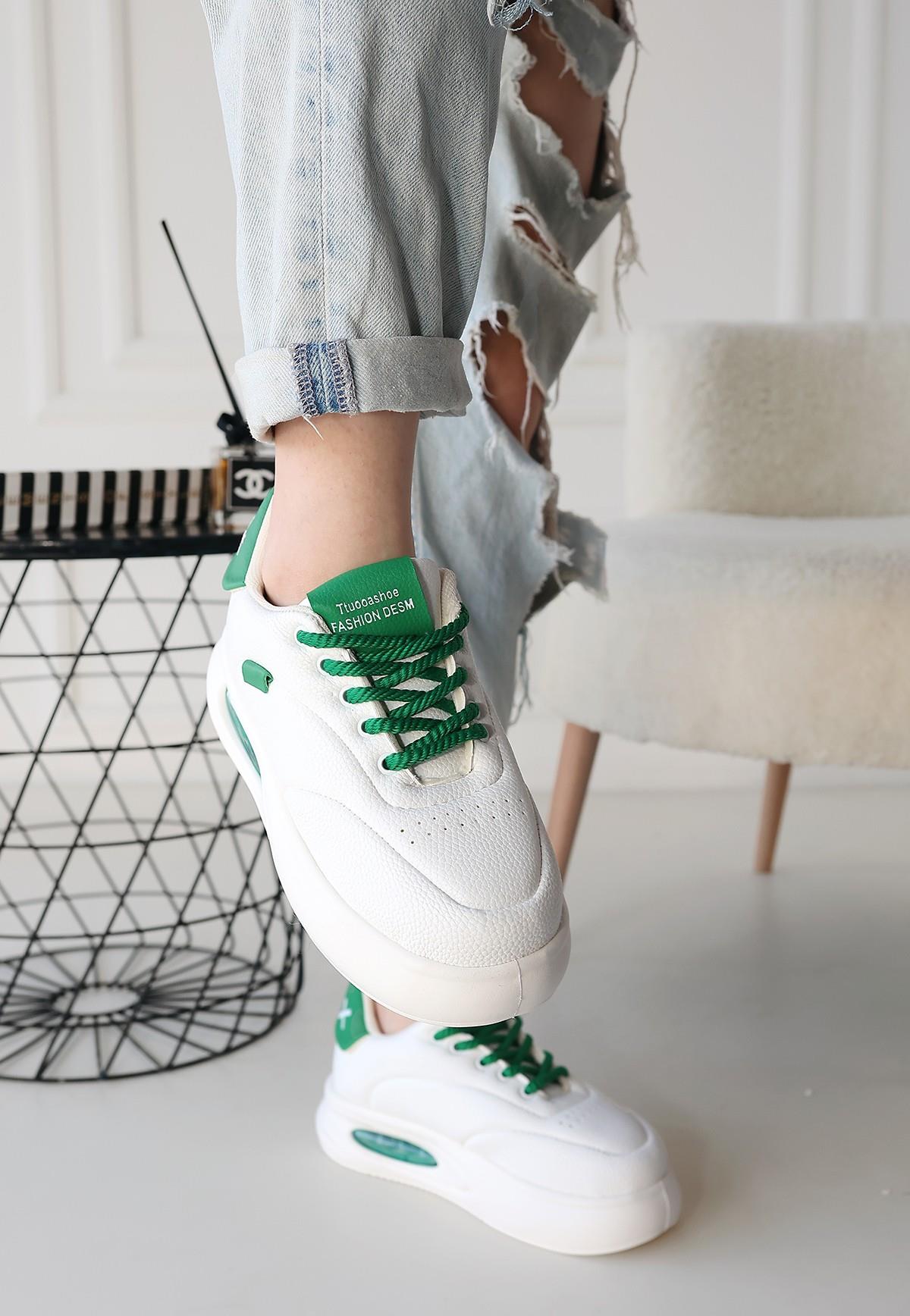 Chris Beyaz Cilt Yeşil Detaylı Bağcıklı Spor Ayakkabı (DIV-KDN-KSP-257654)