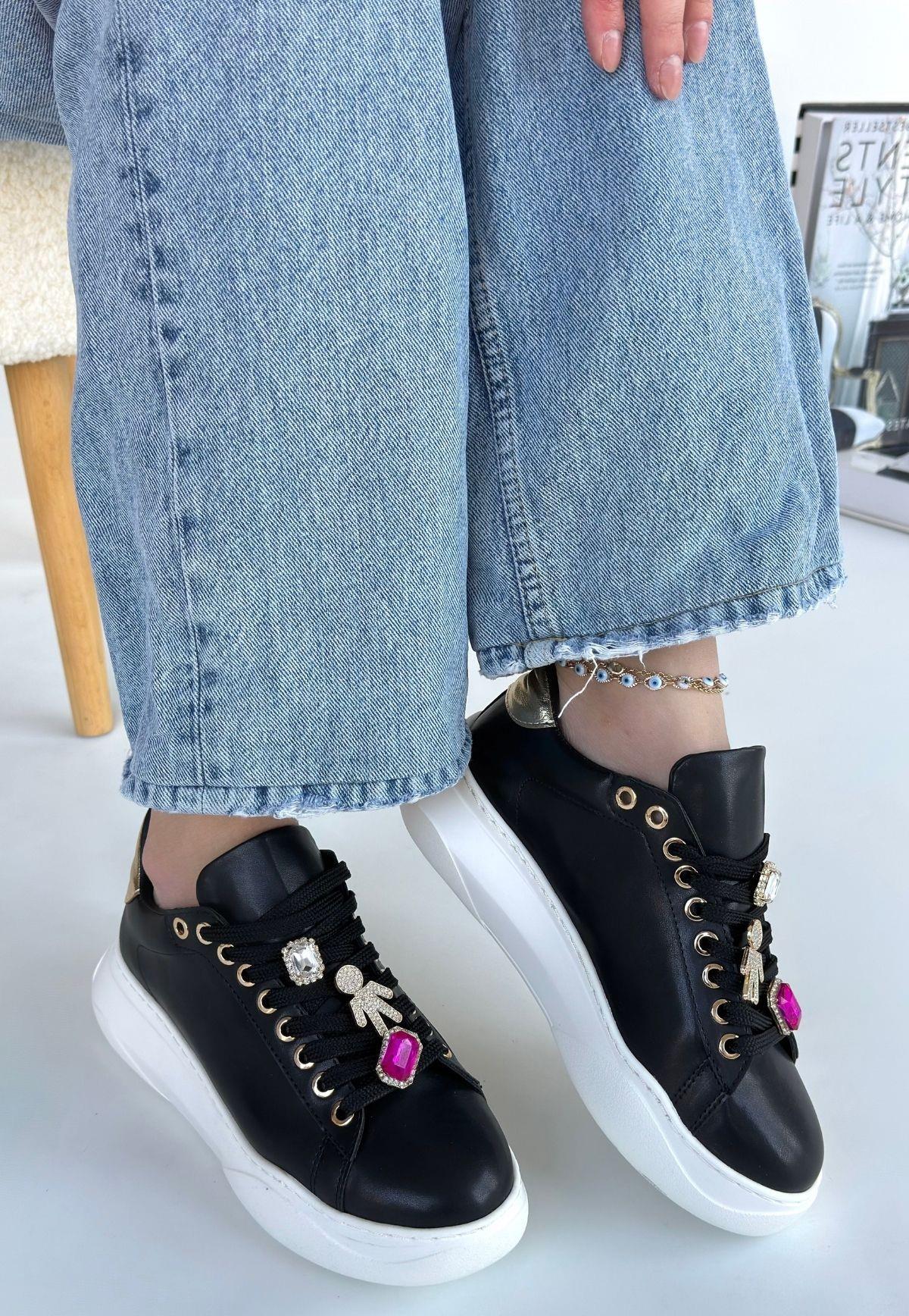 Gane Siyah Cilt Bağcıklı Spor Ayakkabı (BAB-KDN-KSP-265100)