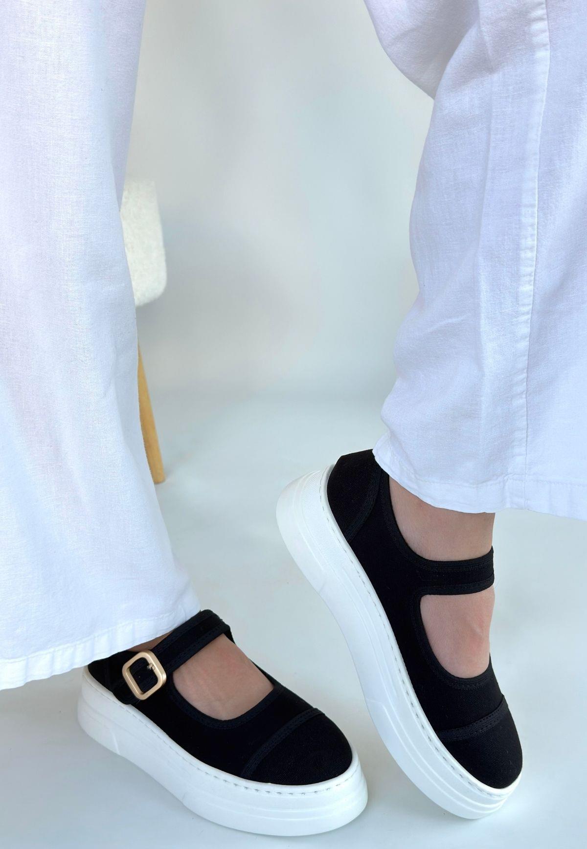 Lunni Siyah Keten Spor Ayakkabı (HEJ-KDN-KSP-265084)