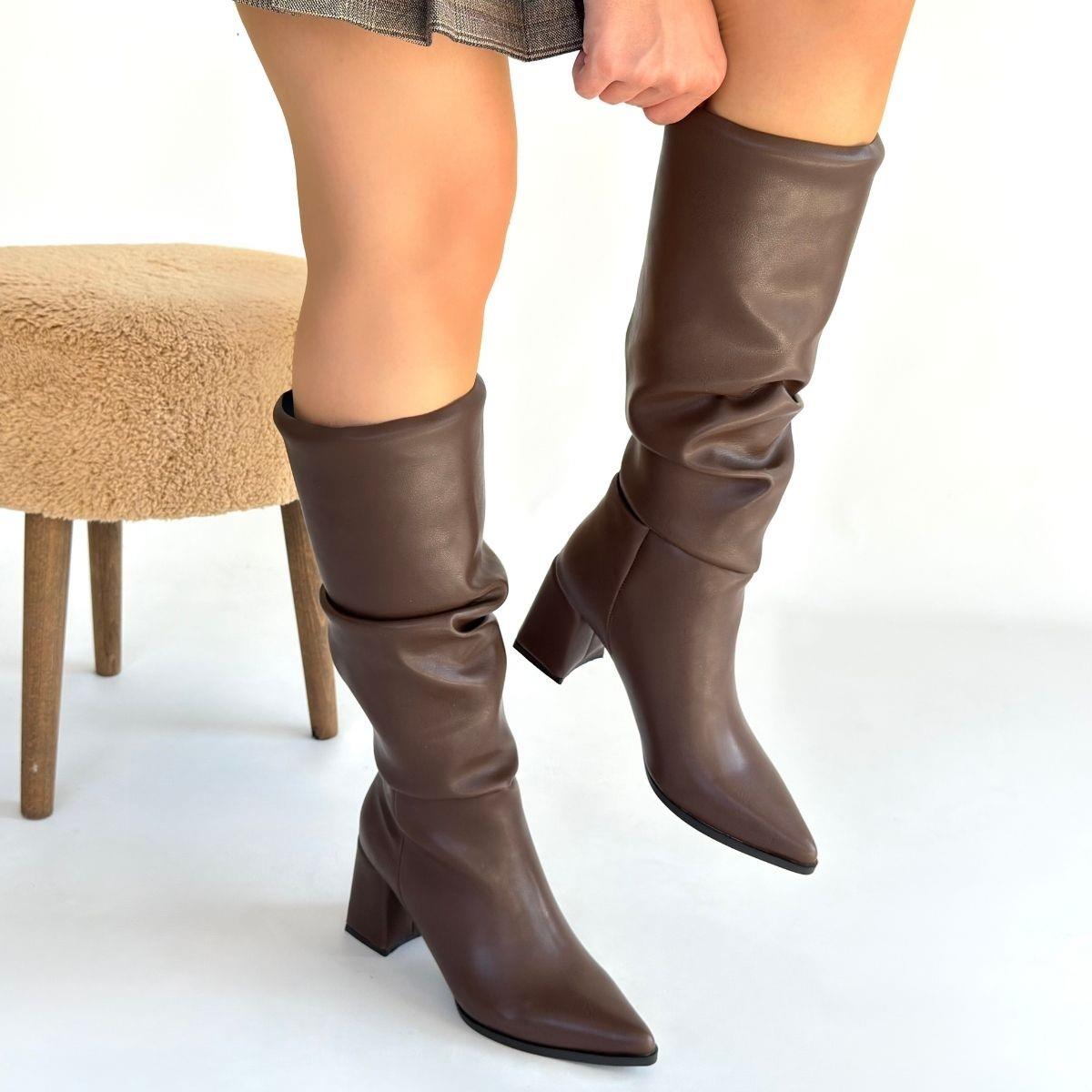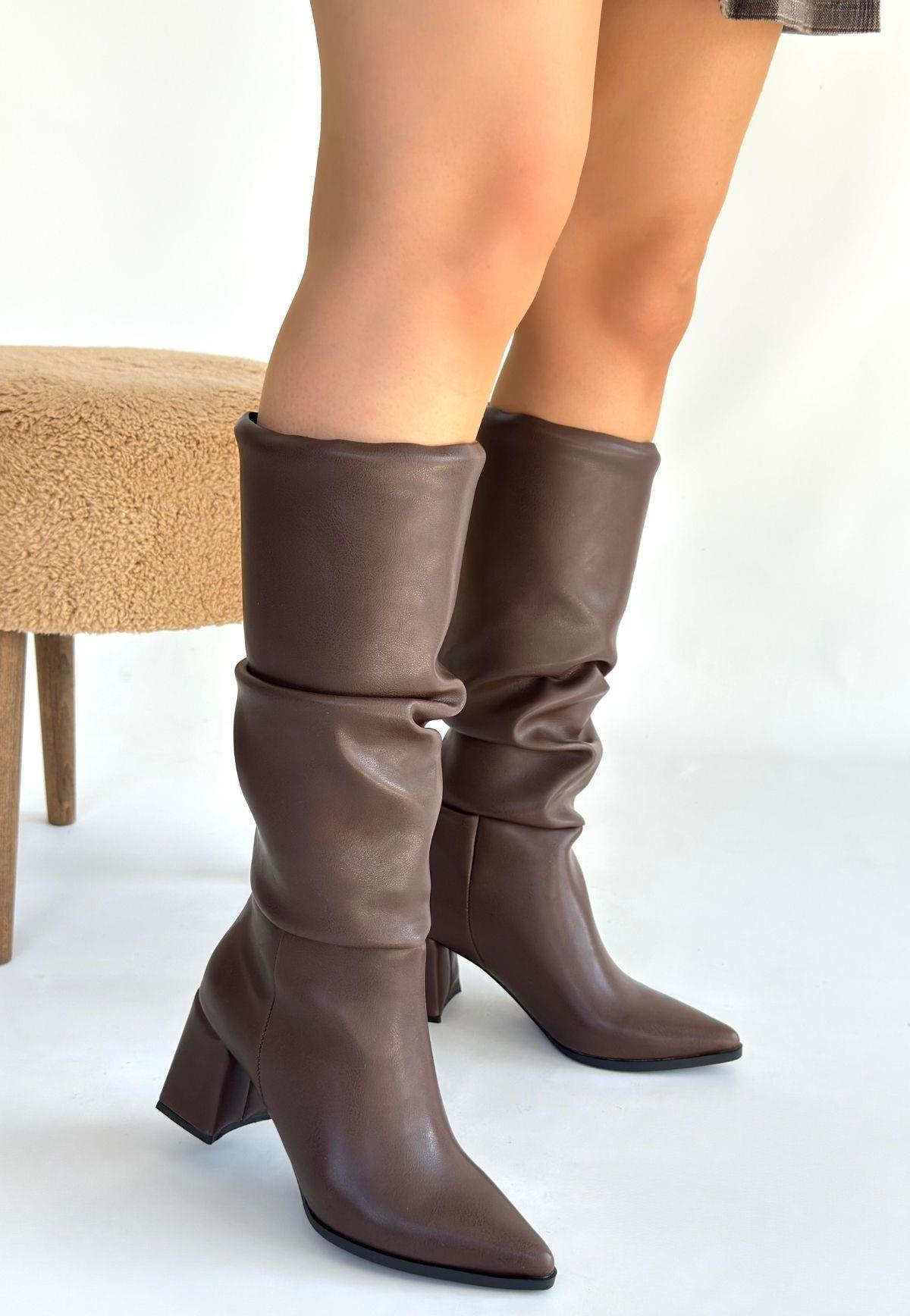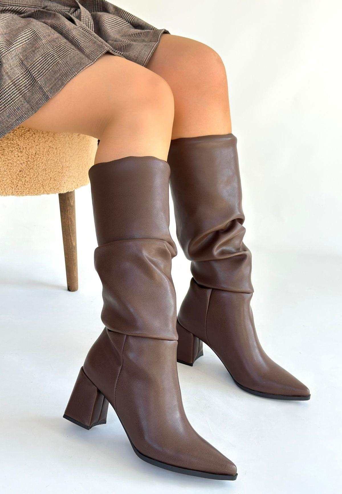 Pitay Kahverengi Cilt Körüklü Topuklu Çizme (TUA-KDN-CZM-266068)