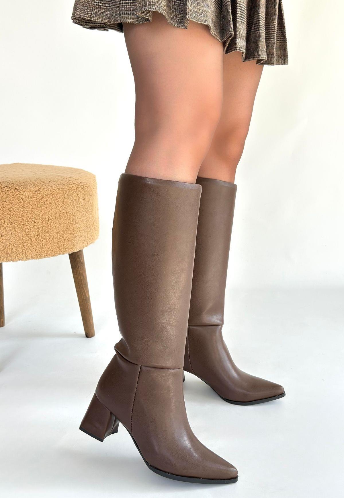Roksa Acı Kahvei Cilt Topuklu Çizme (TUA-KDN-CZM-266070)