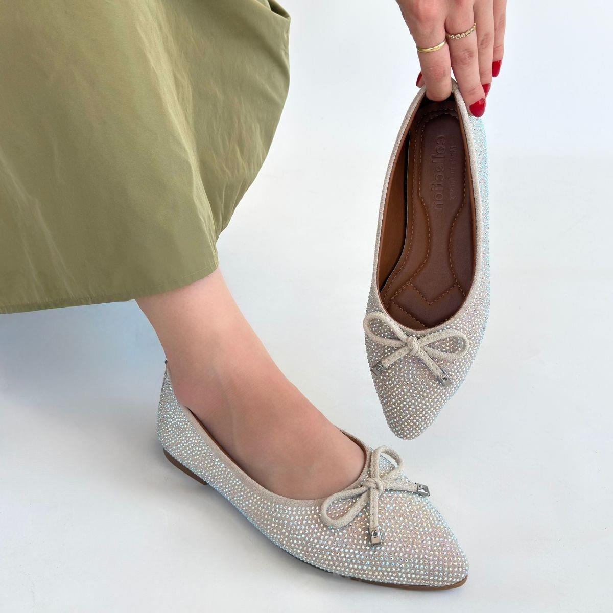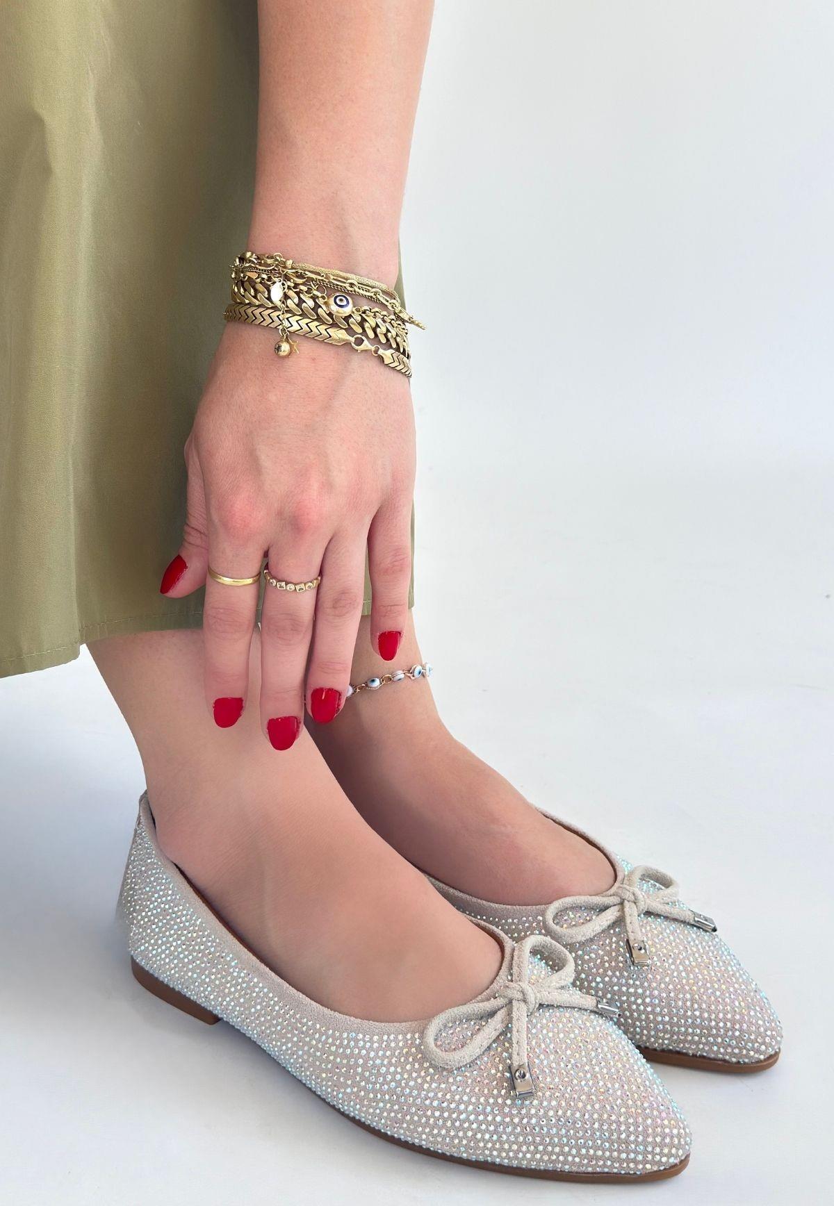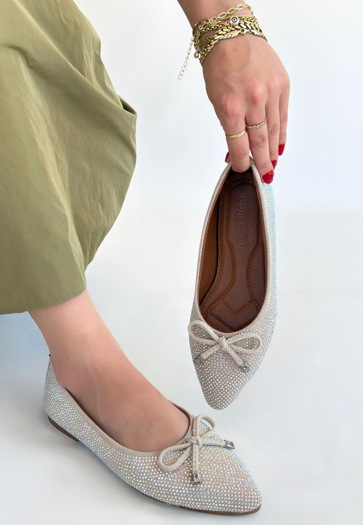 Sarra Bej Saten İşlemeli Babet Ayakkabı (BİA-KDN-KBB-265372)