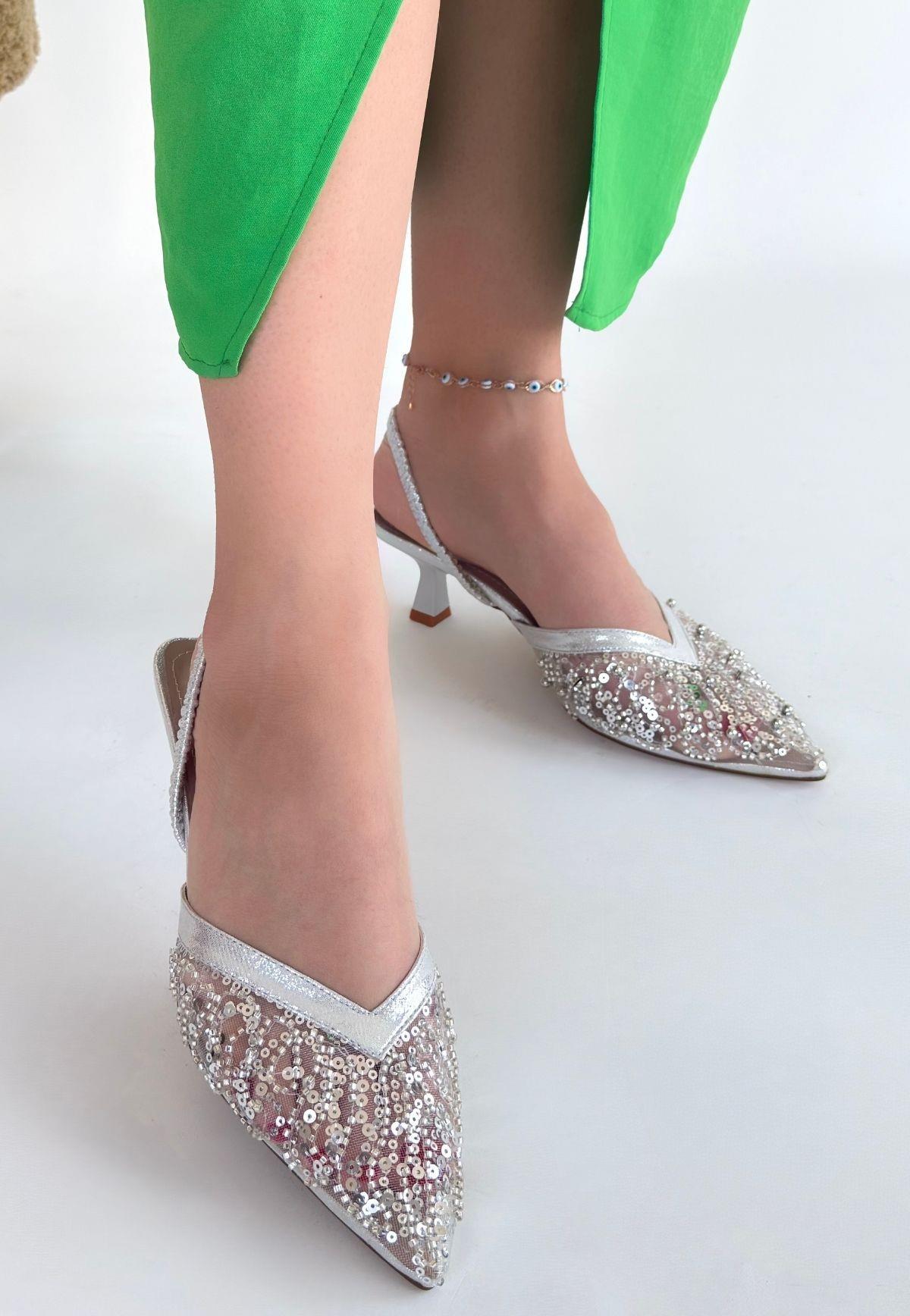 Toyi Gümüş Saten Topuklu Ayakkabı (BİA-KDN-KTP-265369)