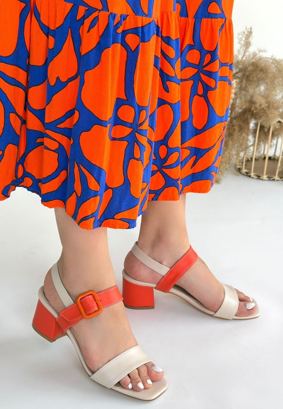 Year Bej Cilt Turuncu Detaylı Turuncu Topuklu Topuklu Ayakkabı (ILK-KDN-KTP-262662)