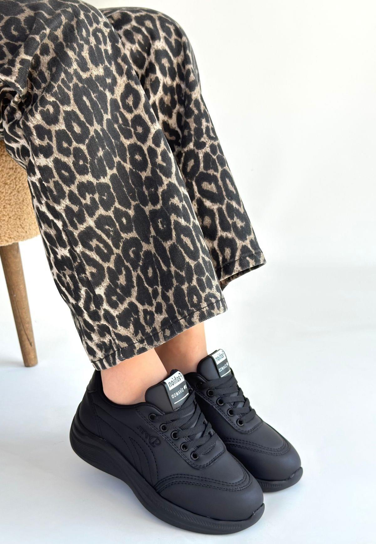 Yejja Siyah Cilt Bağcıklı Spor Ayakkabı (DIV-KDN-KSP-266083)