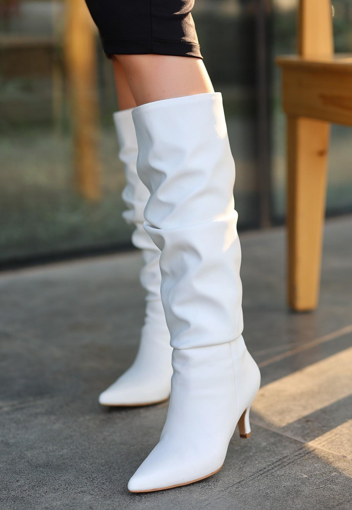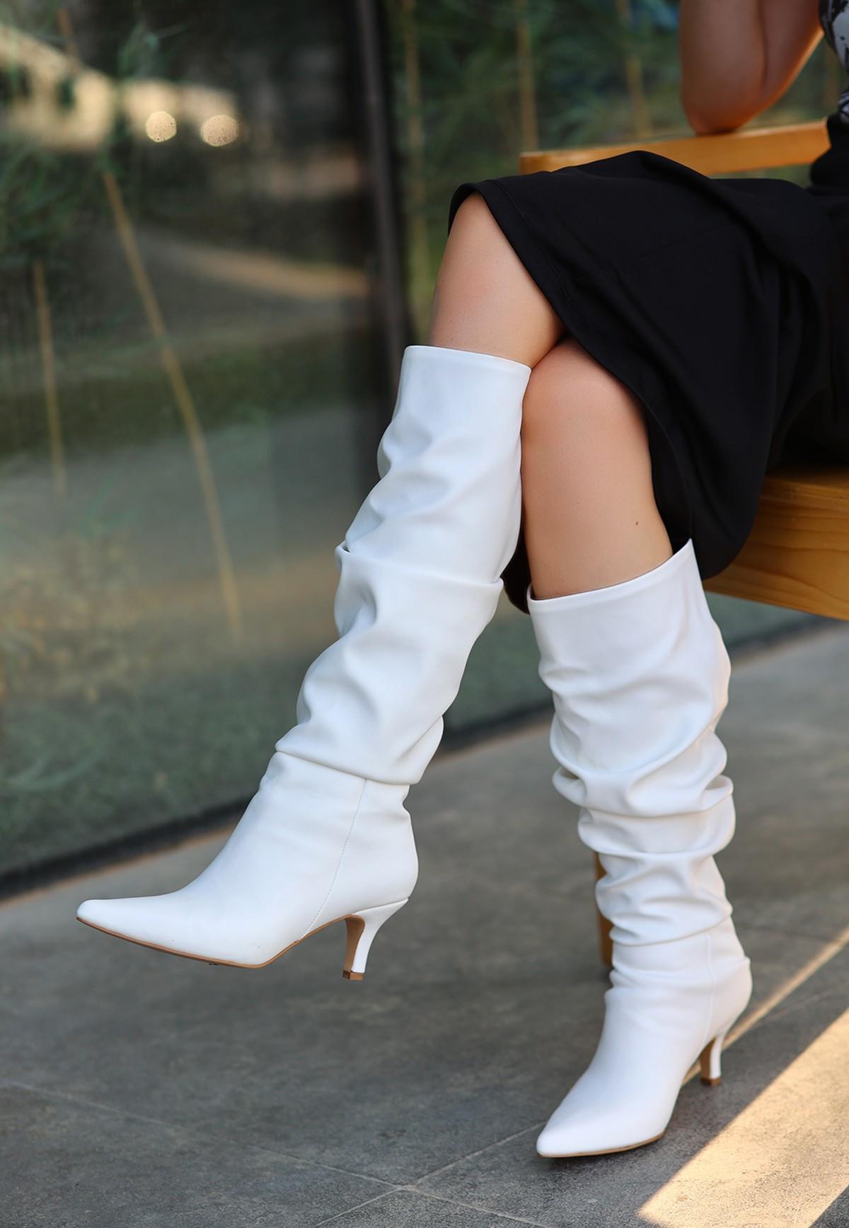 Zelya Beyaz Cilt Topuklu Çizme (SEL-KDN-CZM-265629)