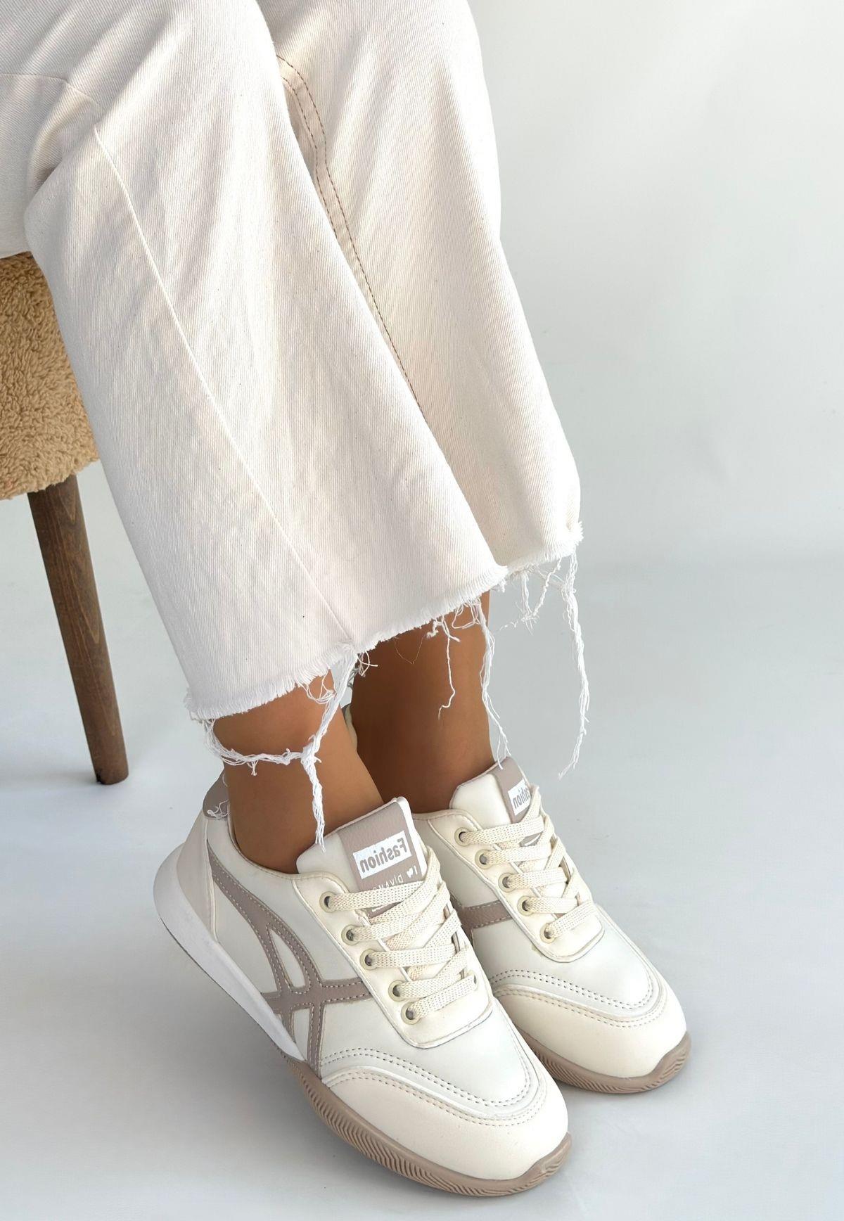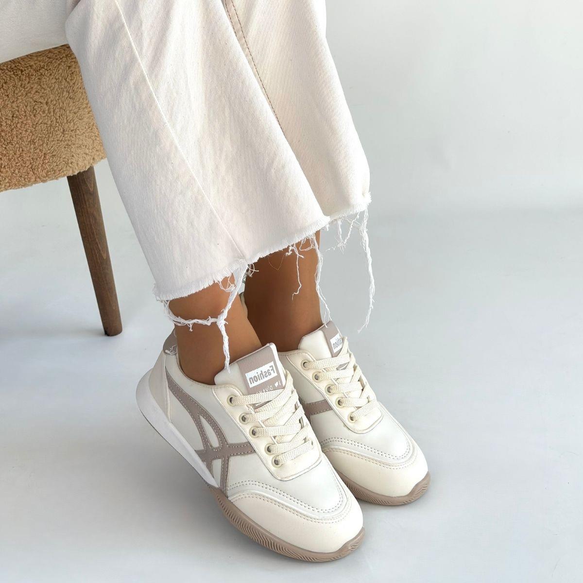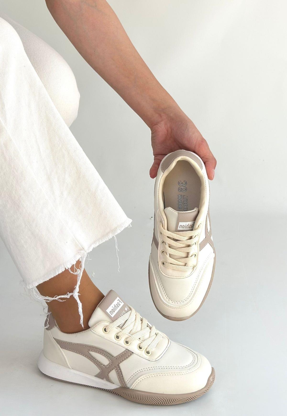Zlay Bej Cilt Vizon Detaylı Bağcıklı Spor Ayakkabı (DIV-KDN-KSP-266027)
