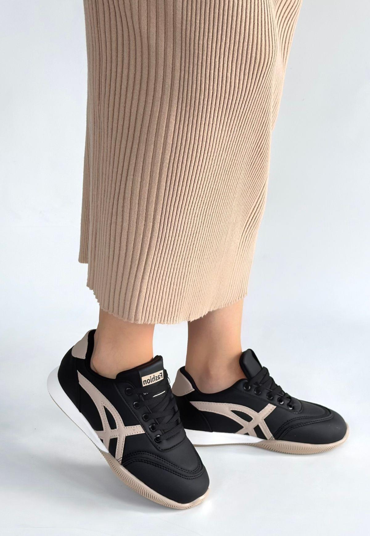 Zlay Siyah Cilt Bej Detaylı Bağcıklı Spor Ayakkabı (DIV-KDN-KSP-265931)